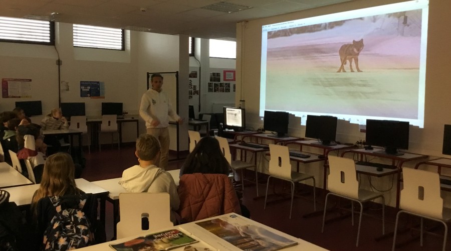 Les élèves ont ainsi découvert la vie du loup en liberté dans les Abruzzes, en Italie, territoire où Patrice Raydelet effectue régulièrement des séjours d’observation. Fondateur de l’association jurassienne des Grands Prédateurs, il collabore également avec le centre de sauvetage de la faune sauvage Athénas, engagé dans la protection et le soin des animaux.