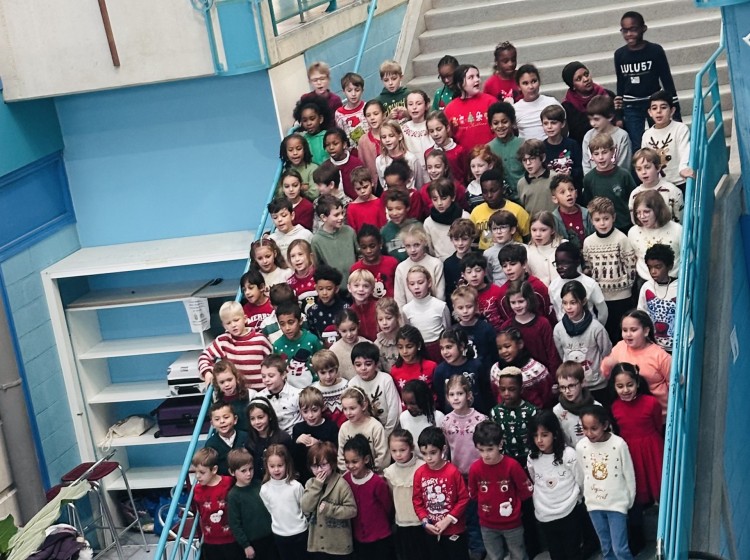 Le Vendredi 12 Décembre, à tour de rôle, les classes, regroupées par cycle, ont proposé à un large public un répertoire de chants de Noël