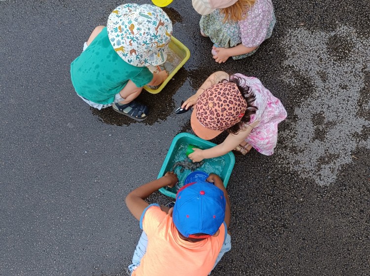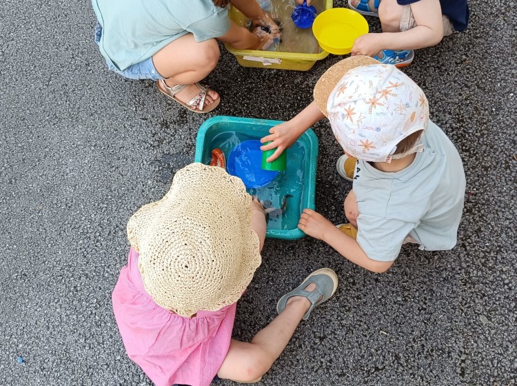 Il fait chaud !!! Les bassines d'eau et de jeux d'eau sont de sortie lors des récréations en maternelle !