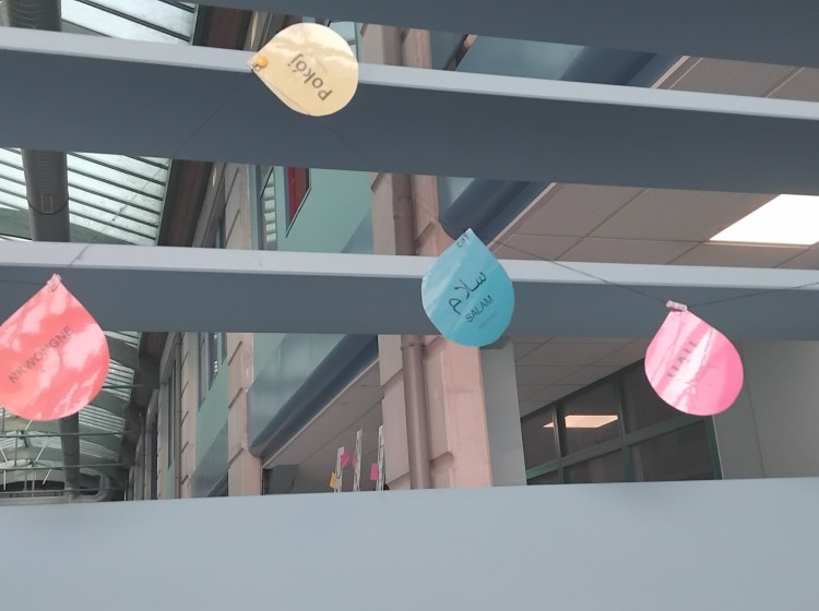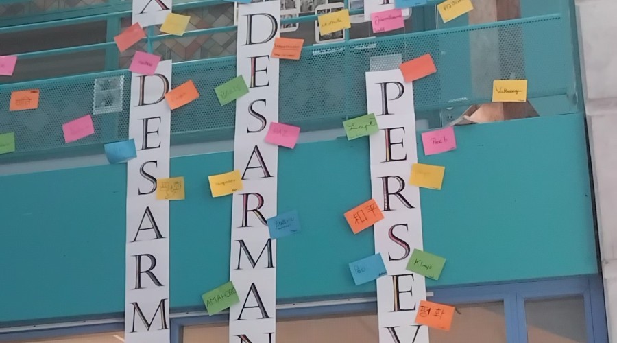 Ainsi les élèves du Pôle d’Enseignement ont décliné le mot PAIX dans une trentaine de langues étrangères, d’origine familiale ou d’un pays de leur choix.