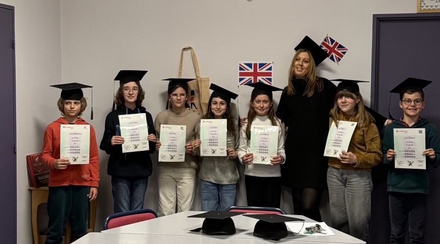 Les anciens élèves de CM2, accompagnés de leurs parents, ont obtenu brillamment la Certification Cambridge en fin d'année scolaire 2025. Ils ont été reçus par le Chef d’Etablissement, David BARTH et l’enseignante, Mme BERNE.
