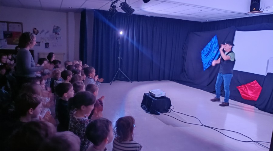 Spectacle "sur la piste des arts" pour les Maternelles le Lundi 26 Janvier joué par Monsieur Zingarelli de la Compagnie Planet mômes.