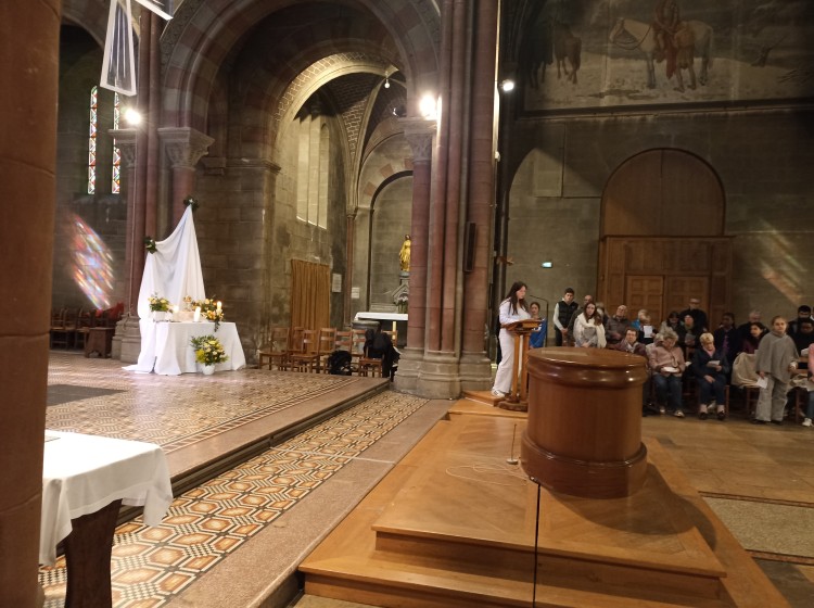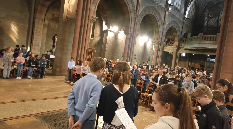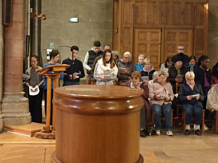 Comme chaque année, une centaine d'élèves du pôle d'enseignements participe au Chemin de Croix à l'église Saint-Martin des Chaprais, avec les paroissiens et le Père Sylvain Muller.