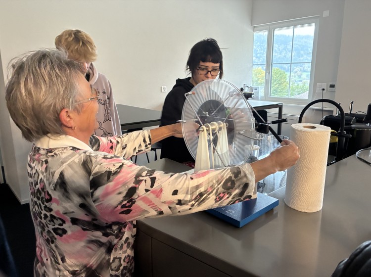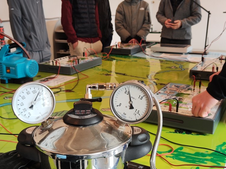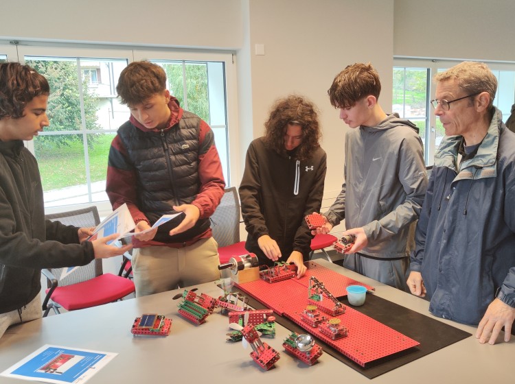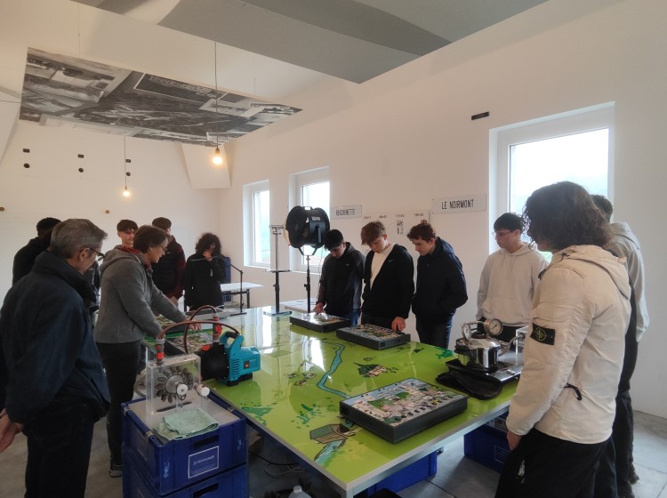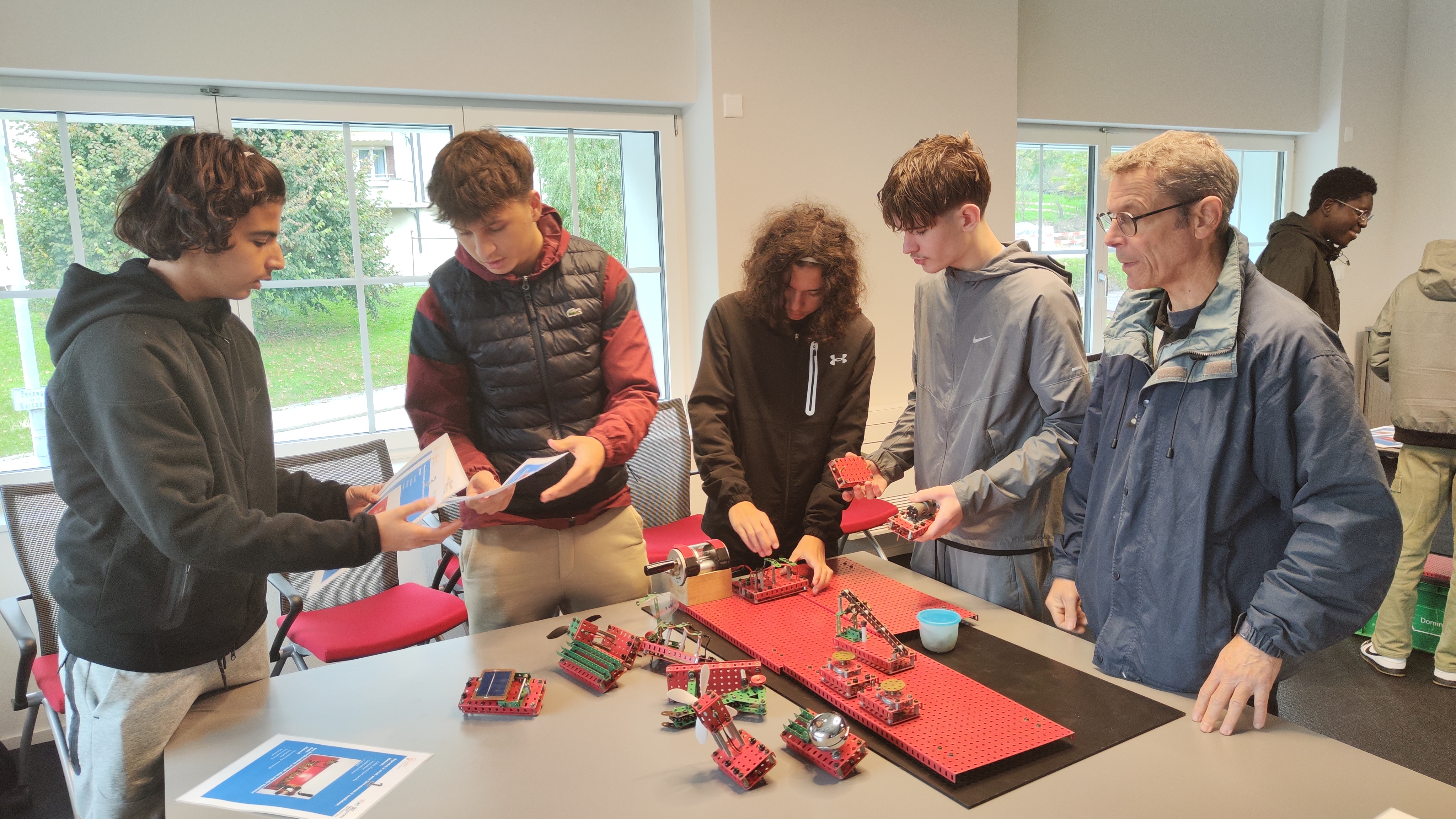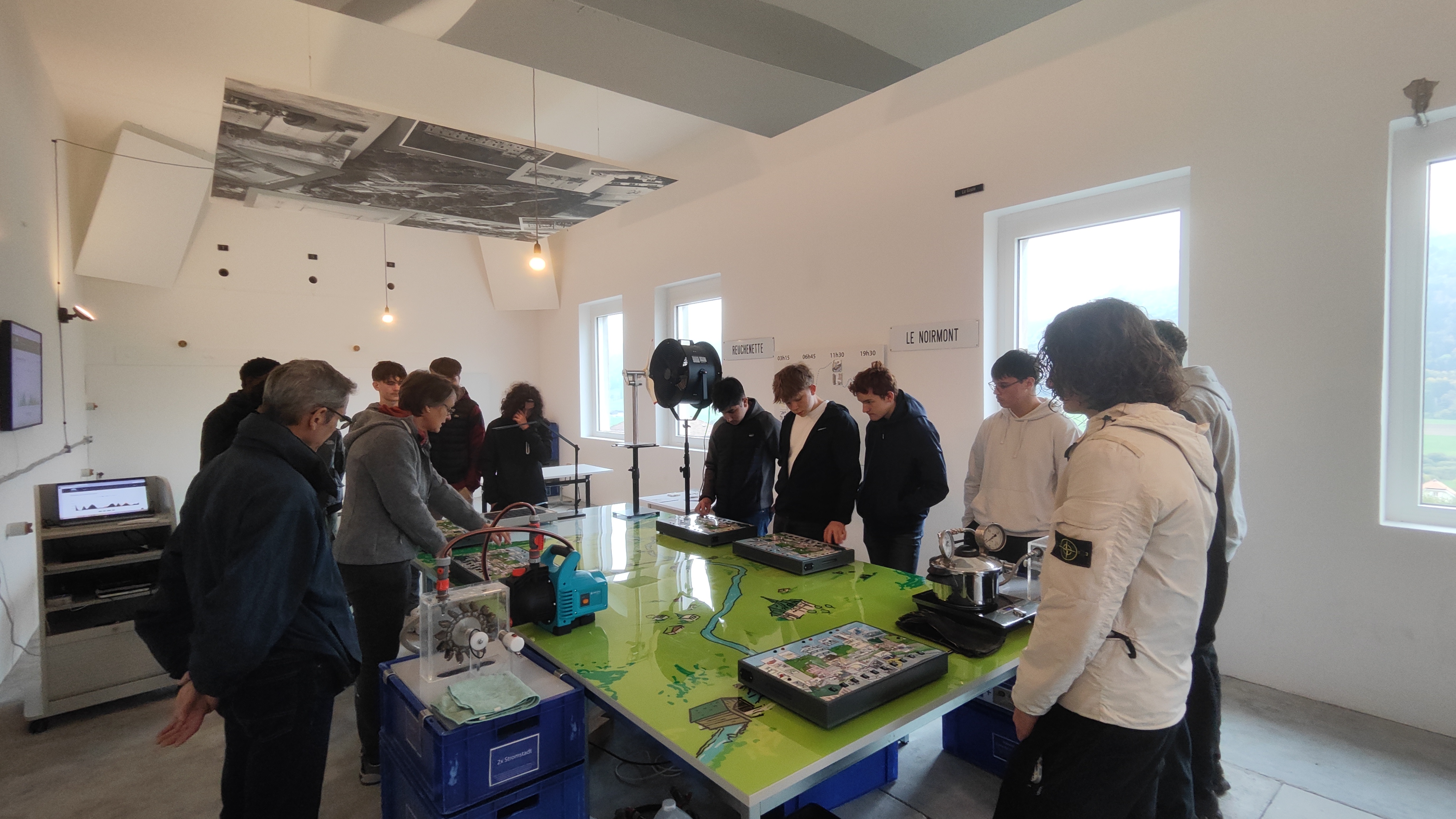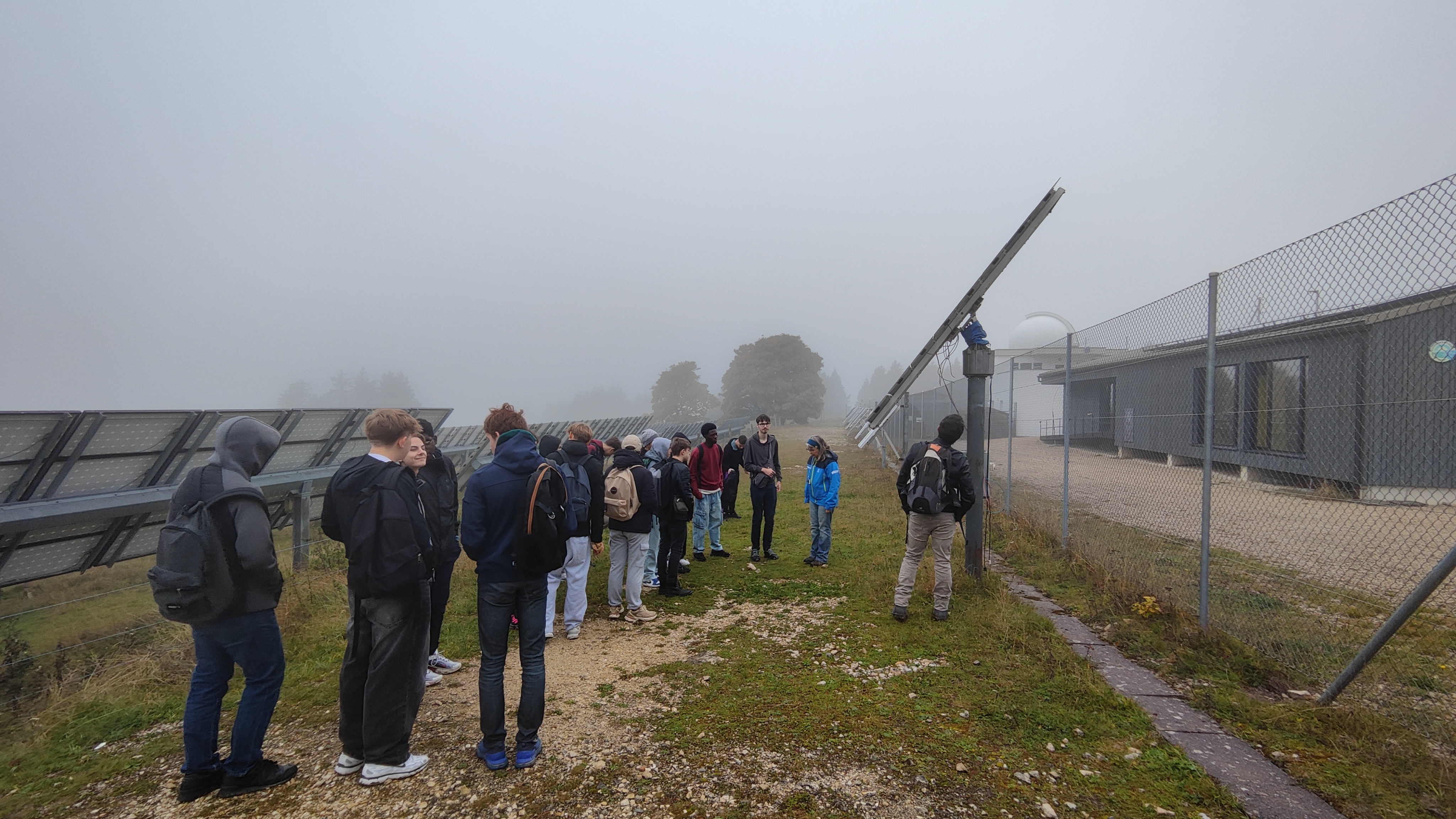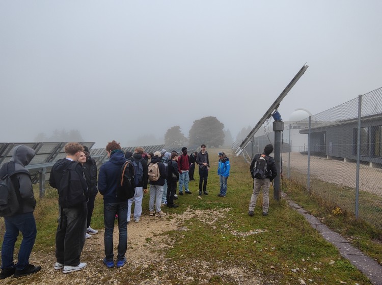 Les lycéens se rendent ensuite à la centrale solaire de Mont Soleil. Après le déjeuner, ils sont accueillis au pavillon des visiteurs, où l’on présente les projets de recherche en cours, les innovations technologiques, ainsi que les défis climatiques liés aux énergies renouvelables. Mise en service en 1992, cette centrale est l’une des plus anciennes installations photovoltaïques de Suisse. Elle sert à la fois de site de recherche, de démonstration et de sensibilisation.