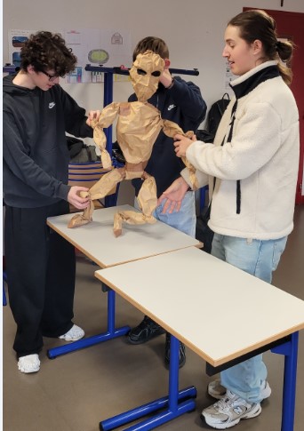 Pour guider les élèves, le lycée accueille Carine Rousselot, marionnettiste professionnelle. Au fil des séances, les élèves découvrent les bases de la construction et de la manipulation, tout en affinant l’expression, la posture et le jeu collectif.