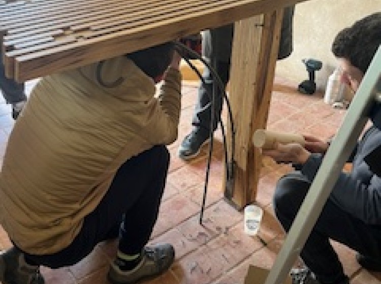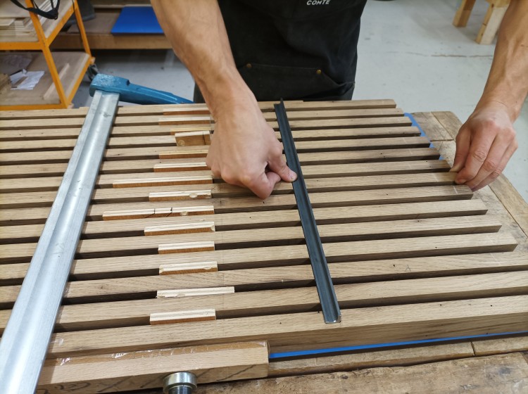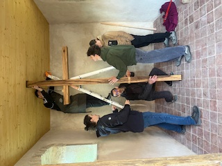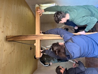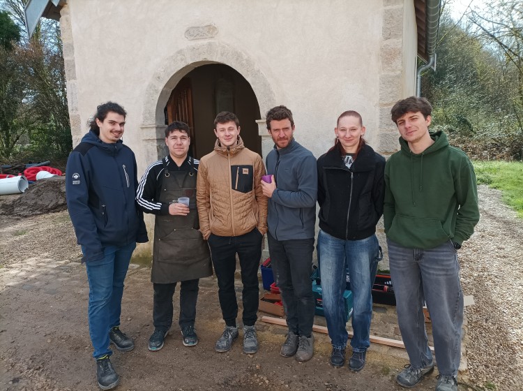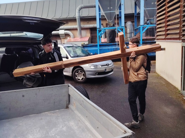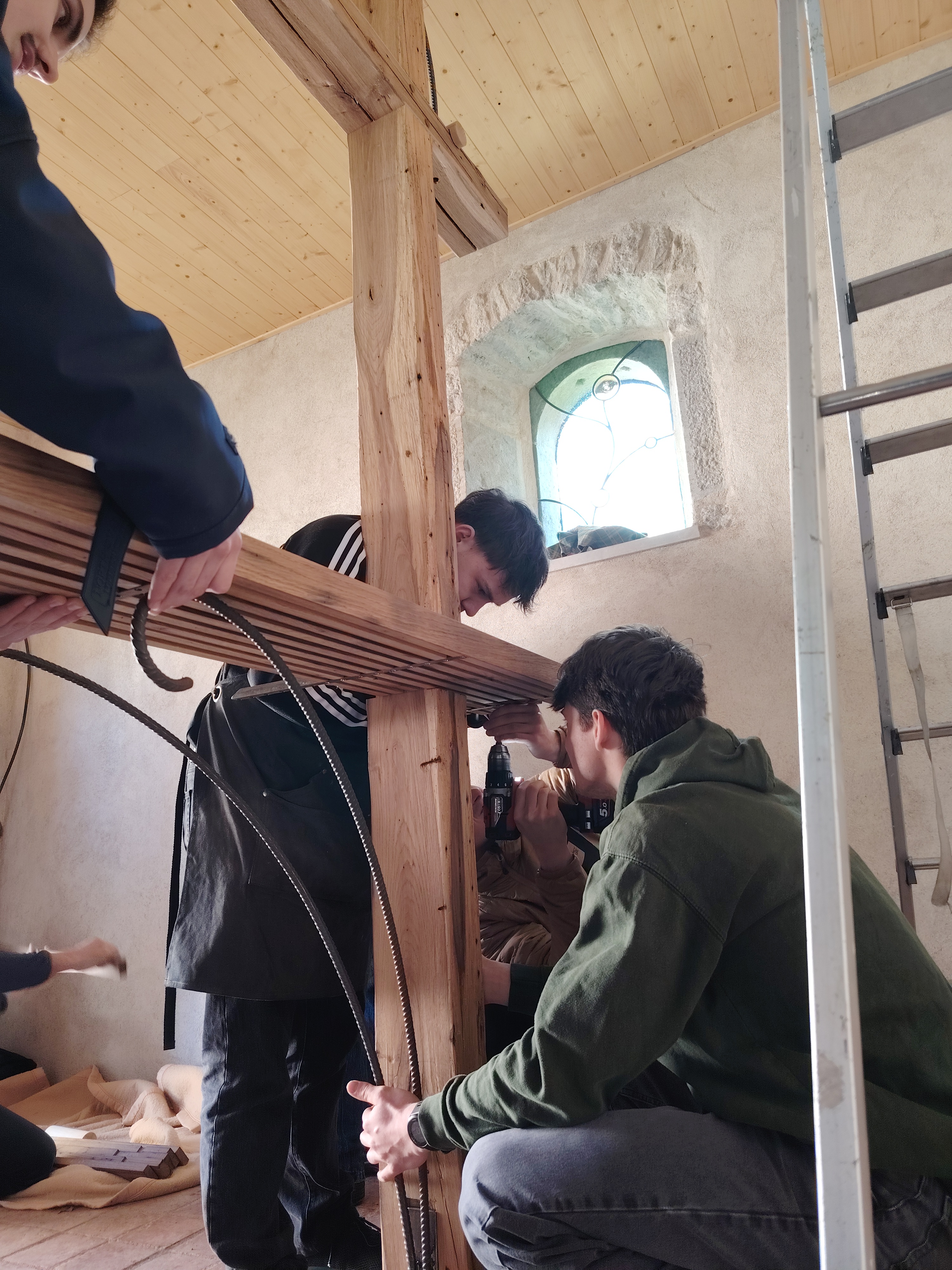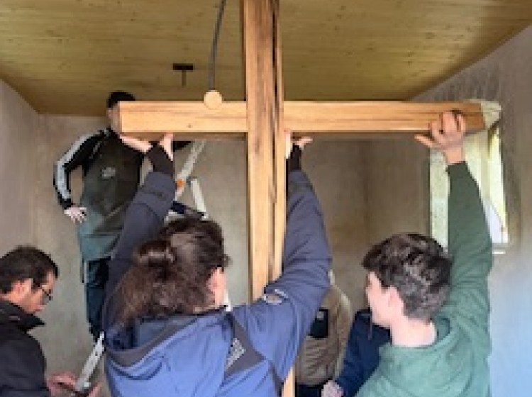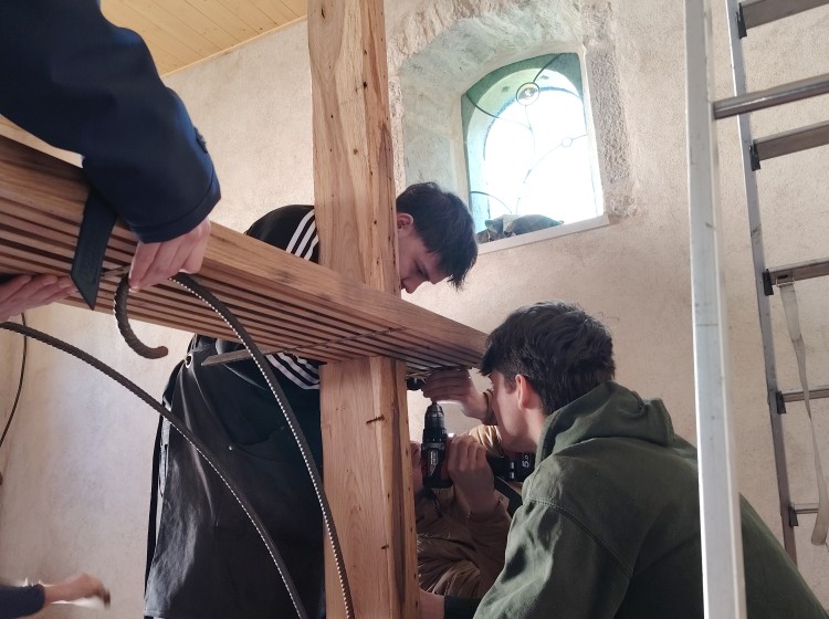 La classe de 1ère BMA Ebéniste finalise son projet, avec la pose en lieu et place de l’autel au cœur de la chapelle Notre-Dame du Refuge à Pirey, entre les deux vitraux contemporains. Cet ouvrage aura été l’occasion de fédérer le groupe d’élèves autour d’approches diverses (récupération et exploitation au mieux de matériaux anciens, interventions mécaniques et manuelles de précision, mise en forme de pièces métalliques, soudures…).