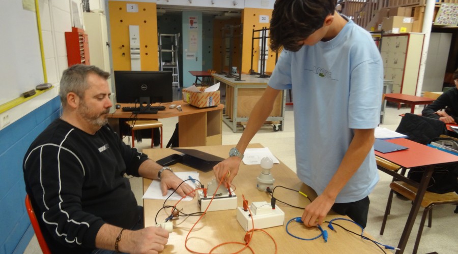 Les élèves de 3e Prépa-métiers réalisent des travaux pratiques sur le simple allumage en fil volant.