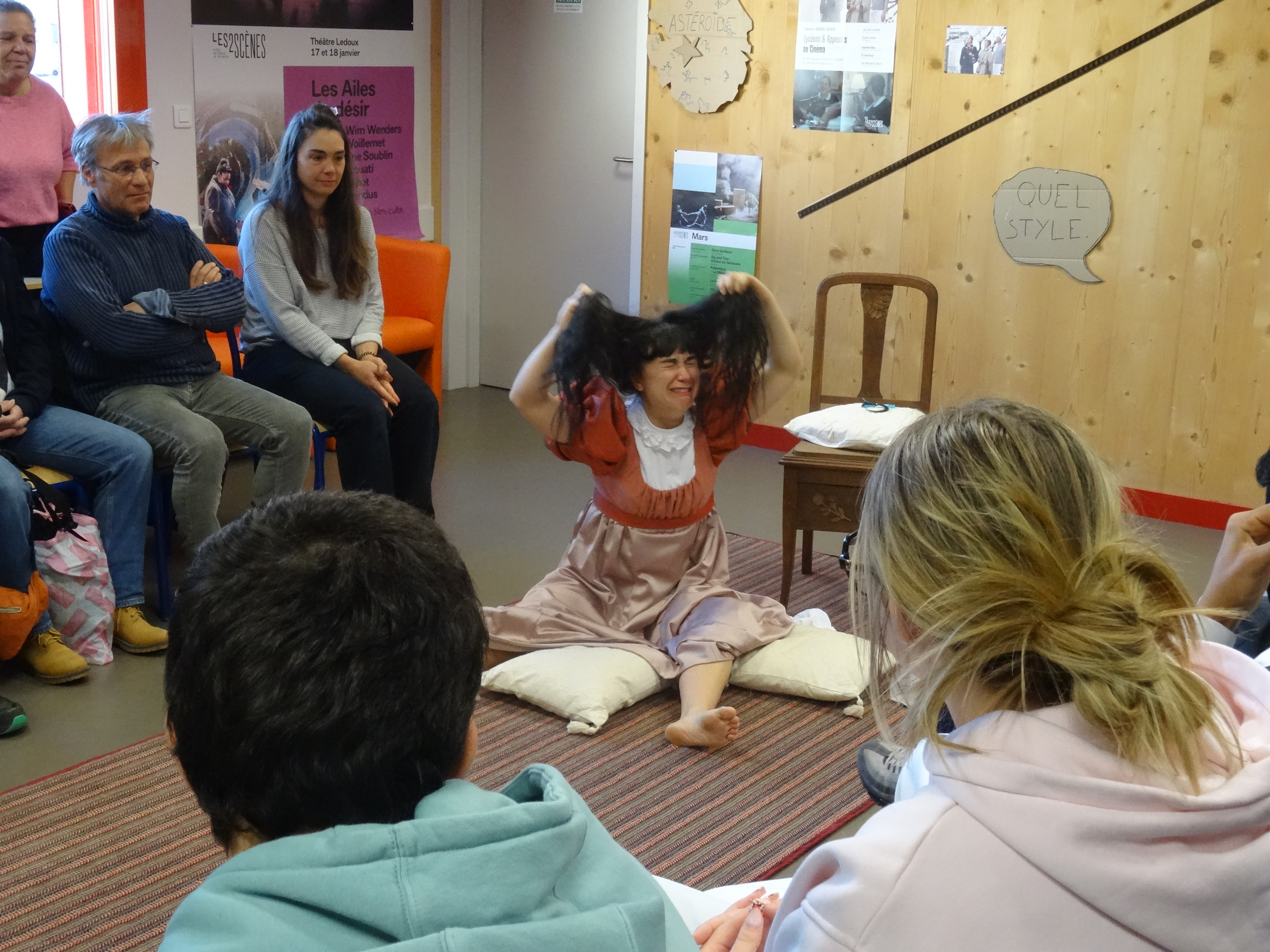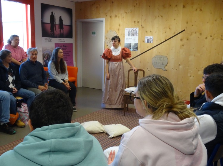 Les lycéens assistent tout d'abord à une "petite forme" intitulée "Le Projet Austen", mise en scène par Céline Chatelain et jouée par la Compagnie L’oCCasion. Présentée en Franche-Comté dans le cadre du dispositif, cette forme légère permet une première approche du théâtre vivant, au plus près des artistes, prolongée par un temps d’échange.